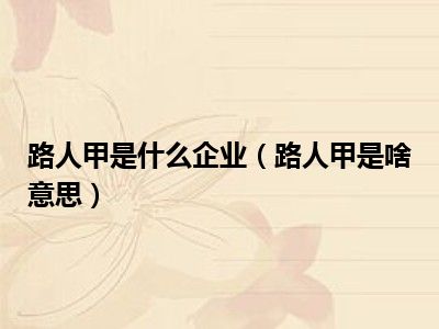 大家好,小编只剩骄傲来为大家讲解下。路人甲是什么企业,路人甲是啥意思很多人还不知道,现在让我们一起来看看吧!