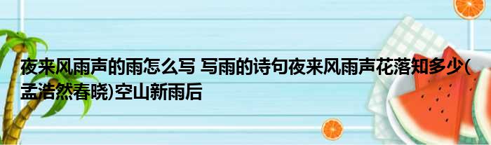 以上就是【夜来风雨声的雨怎样写 写雨的诗句夜来风雨声花落知多少(孟浩然春晓)空山新雨后】方面的全部内容,如果感兴趣的话,可以收藏,也可以转发给小伙伴们哦。