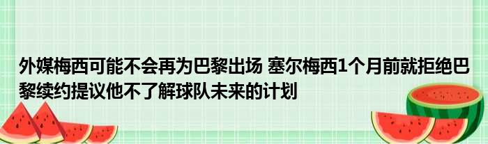 外媒梅西或许不会再为巴黎进场 塞尔梅西1个月前就回绝巴