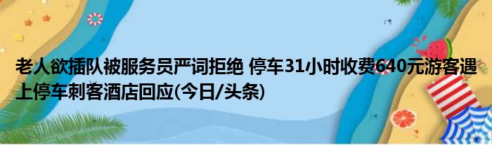 大家好,小编【落日追脚尖】,白叟欲插队被服务员严词回绝 泊车31小时收费640元游客遇上泊车刺客酒店回应很多人还不知道,那么现在让我们一起来看看吧!