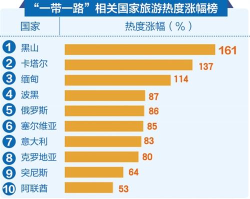 “一带一路”倡议的提出,推动了中国与相关国家和地区的旅游合作,让中国游客更加关注和了解这些国家的风土人情和旅游资源,并在出行时优先选择“一带一路”相关旅游目的地。今年上半年,“一带一路”相关国家中,卡塔尔和缅甸的旅游热度涨幅也超过100%。此外,中俄建交70周年之际,俄罗斯旅游热度环比上涨29%。