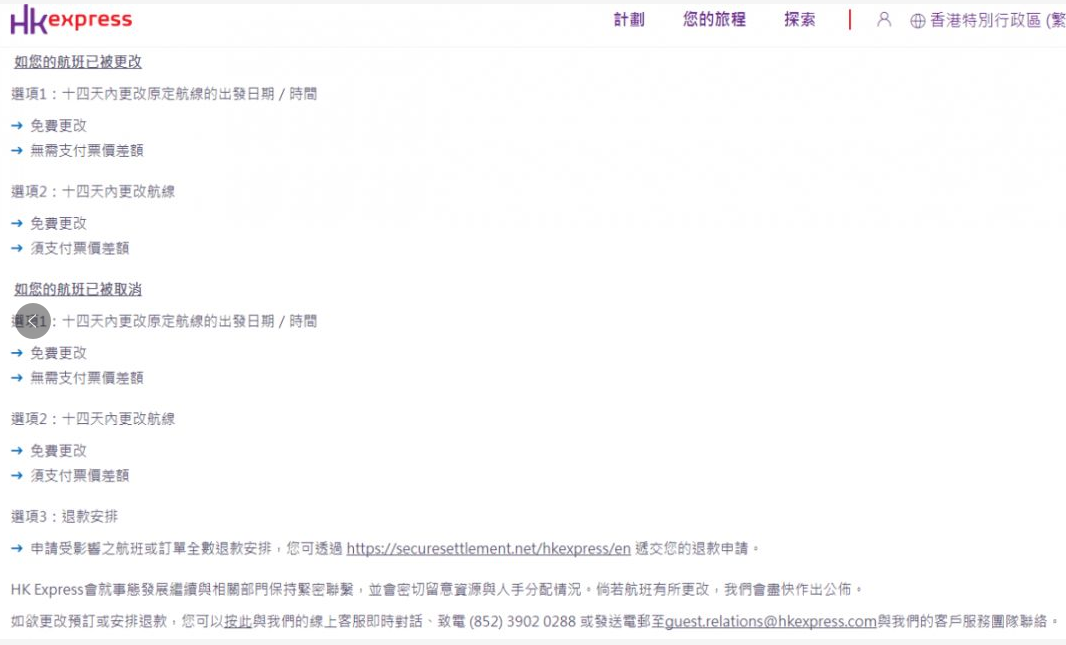 香港快运航空在其官网上发布公告,航班已被取消或被更改的旅客,可选择14天内免费更改原定航线的出发日期/时间(无需支付差价),或14天内更改航线(需支付差价),也可以申请对受影响的航班或订单全数退款。