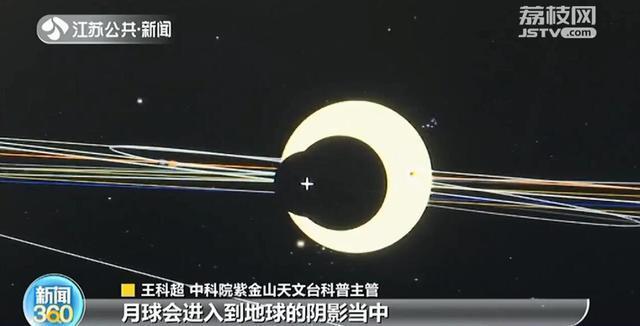中科院紫金山天文台科普主管王科超告诉记者:“在5月26日晚上的时候,月球、地球和太阳将排成一条直线,月球会进入到地球的阴影当中,这时候‘月全食’就发生了。”