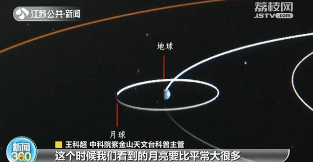 王科超科普:“‘超级月亮’就是满月的时候,月亮位于近地点附近,这个时候我们看到的月亮要比平常大很多。‘超级月亮’和‘月全食’相遇在一起,组成的这个天象可以说比较少见。”