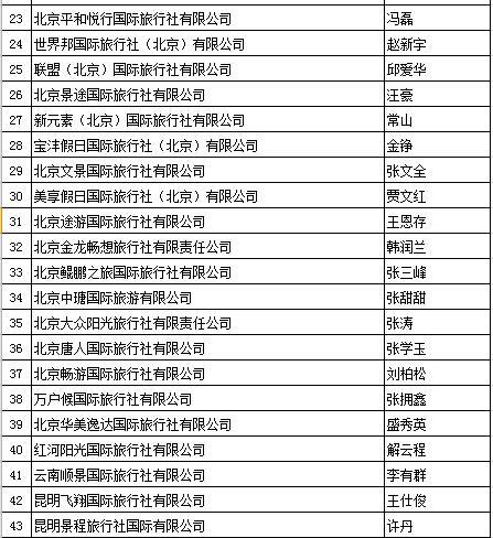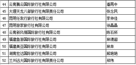国家旅游局许可52家旅行社经营出境旅游业务 作者:admin 来源:网络 发布:2016-11-16 00:00:00 网址:http://m.guazhitianqi.com/lvxing/4624.html 评论:0 收藏 国家旅游局11月14日公布了按照《旅行社条例》和《中国公民出国旅游管理办法》,许可以下52家旅行社经营出境旅游业务: 上一篇:诺唯真游轮7月17日海上瑜伽美食特色体验航线 下一篇:环球漫游荣膺国家旅业榜最佳全球WiFi供应商奖 相关热词搜索:北京天气预报 上海天气预报15天 天气预报降水分布