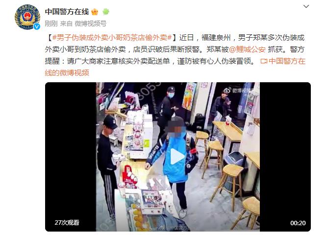 男子伪装外卖小哥奶茶店偷外卖 店员识破后果断报警 作者:admin 来源:网络 发布:2023-04-01 09:07:44 网址:http://m.guazhitianqi.com/redian/1101.html 评论:0 收藏 近日,福建泉州,男子郑某多次伪装成外卖小哥到奶茶店偷外卖,店员识破后果断报警。郑某被鲤城公安抓获。警方提醒:请广大商家注意核实外卖配送单,谨防被有心人伪装冒领。 上一篇:雏菊男孩梗是什么意思网络语 雏菊男孩指的是谁是什么意思 下一篇:今年以来最大范围雨雪来袭 反转!天气又要大变! 相关热词搜索:男子伪装外卖小哥 北京天气预报 上海天气预报15天 天气预报降水分布