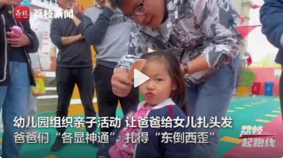 【气氛热烈!幼儿园亲子活动爸爸带娃手忙脚乱】近日,河南商丘,一幼儿园组织亲子活动,让爸爸给女儿扎头发,妈妈在一旁观看。园长柳老师介绍,爸爸们现场手忙脚乱,把女儿头发绑得东倒西歪,纷纷表示梳头太难了,但活动得到了家长们的认可,爸爸们也体会到了妈妈们带孩子的不易。