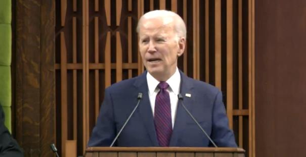 当地时间3月24日,美国总统拜登在加拿大渥太华向加拿大议会发表讲话。他当天在演讲中谈及美国和加拿大在多个领域的合作,并提到双方共同努力解决移民问题。拜登在一段发言中提到: 今天,我为中国进步而鼓掌 ,但随后他又改口称搞错了,自己是要 为加拿大鼓掌 。