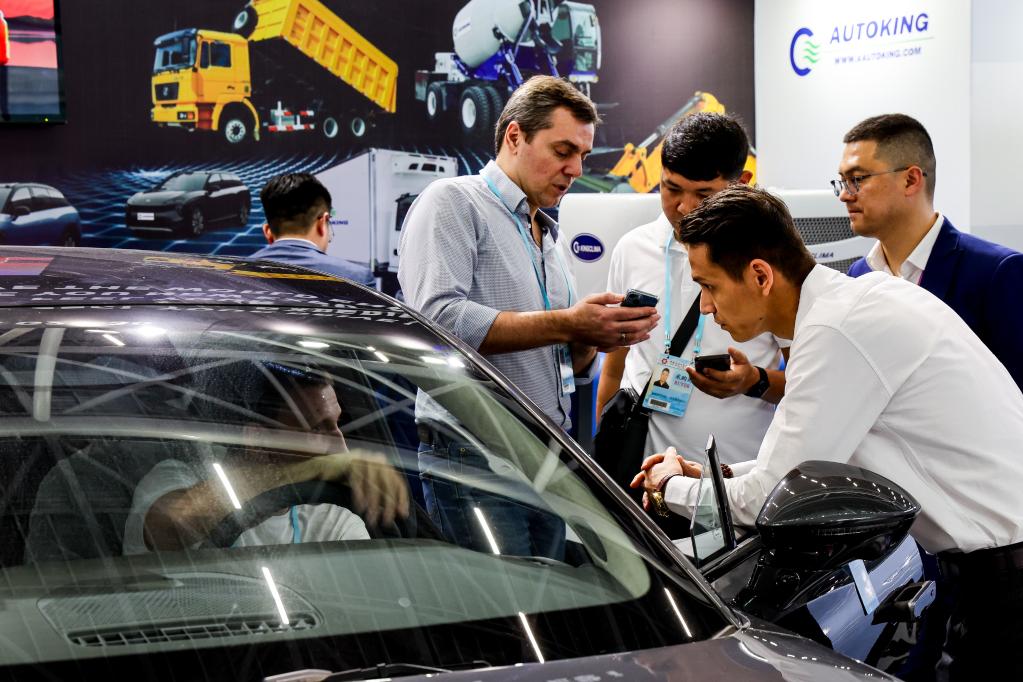 4月15日,采购商在广交会新设置的新动力及智能网联轿车展区了解中国新动力轿车产品。新华社记者刘大伟摄