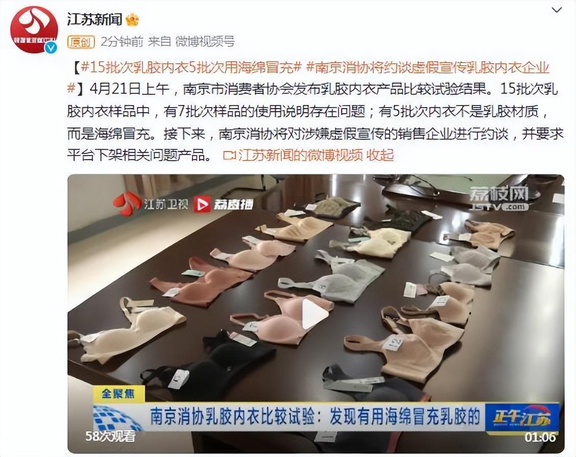15批次乳胶内衣5批次用海绵假充,南京消协将约谈虚伪宣扬