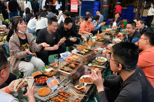 小饼烤炉加蘸料,灵魂烧烤三件套。山东淄博烧烤火爆出圈,成为“美食宇宙的中心”,招引了全国各地的门客蜂拥而至。