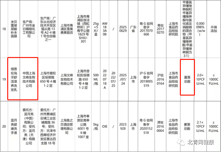 上海文峰生物因“俪恩伦海洋舒活滋补洗发乳”菌落总数不