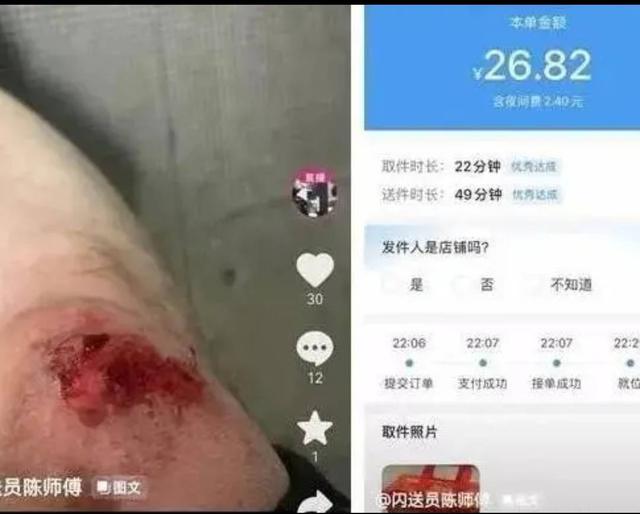 陈涛跑了一单夜间外卖,摔了一跤,赚了20多元