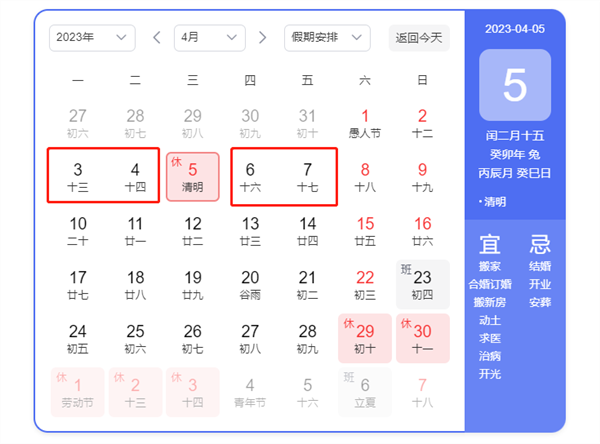 因为本周三就是清明节假期了,跟往常的调休不太一样,因为是周三调休不方便,这次就只有当天一天的假期。