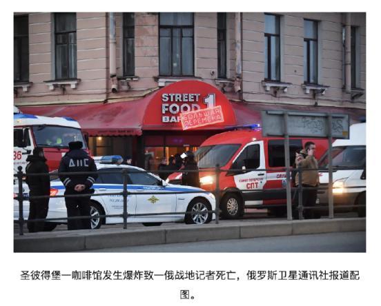 据俄罗斯卫星通讯社报道,圣彼得堡一咖啡馆的爆炸事件已造成1人死亡,25人受伤。俄卫生部表示,圣彼得堡咖啡馆爆炸中的24名伤者已被送至医疗机构。报道称,死者为战地记者弗拉德伦·塔塔尔斯基(真实姓名为马克西姆·福明)。俄罗斯内务部刑事侦查总局的领导层和工作人员小组已赶到事发地。
