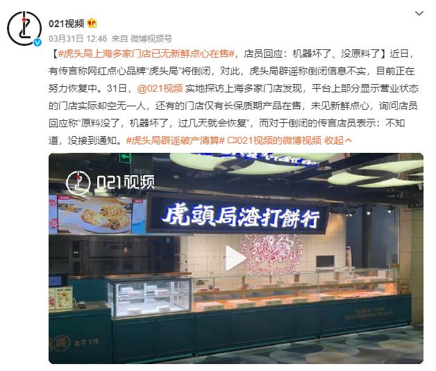 网红点心店虎头局回应倒闭,线上正常运营