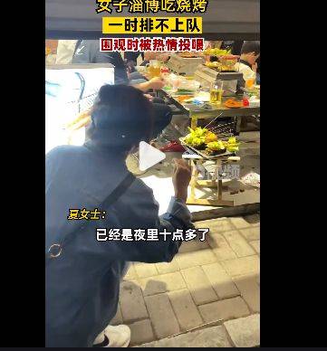 女子淄博吃烧烤排不上队被热情投喂,网上引起了轰动