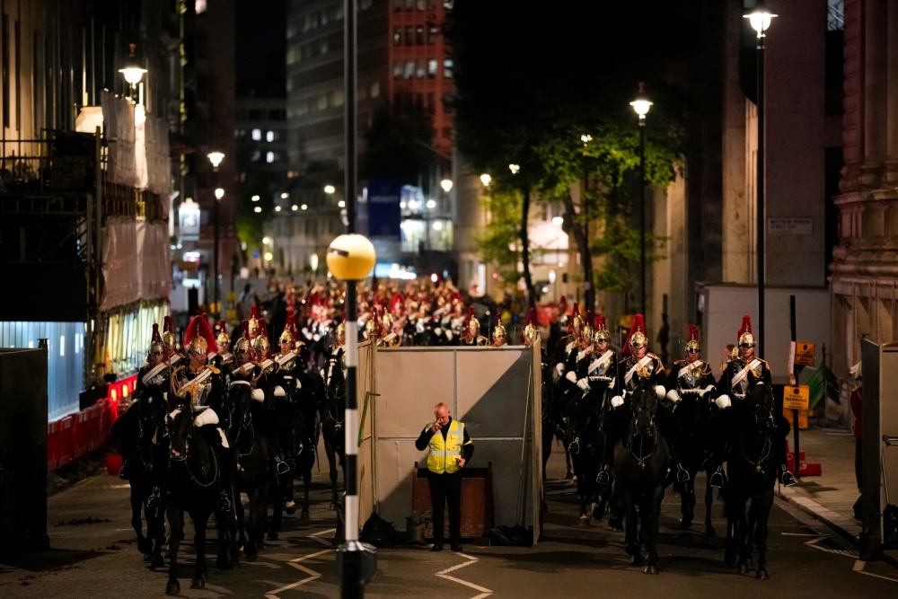 英国当地时间5月3日凌晨12点20分左右,数百名皇家骑兵从白金汉宫出发,浩浩荡荡前往威斯敏斯特教堂,对查尔斯三世国王和卡米拉王后的加冕典礼进行通宵彩排。据《镜报》报道,巡游队伍带着两辆黄金马车(钻石国家马车和黄金国家马车)一路前行,途经特拉法加广场和唐宁街,直到凌晨3点20分过后不久,才回到白金汉宫。