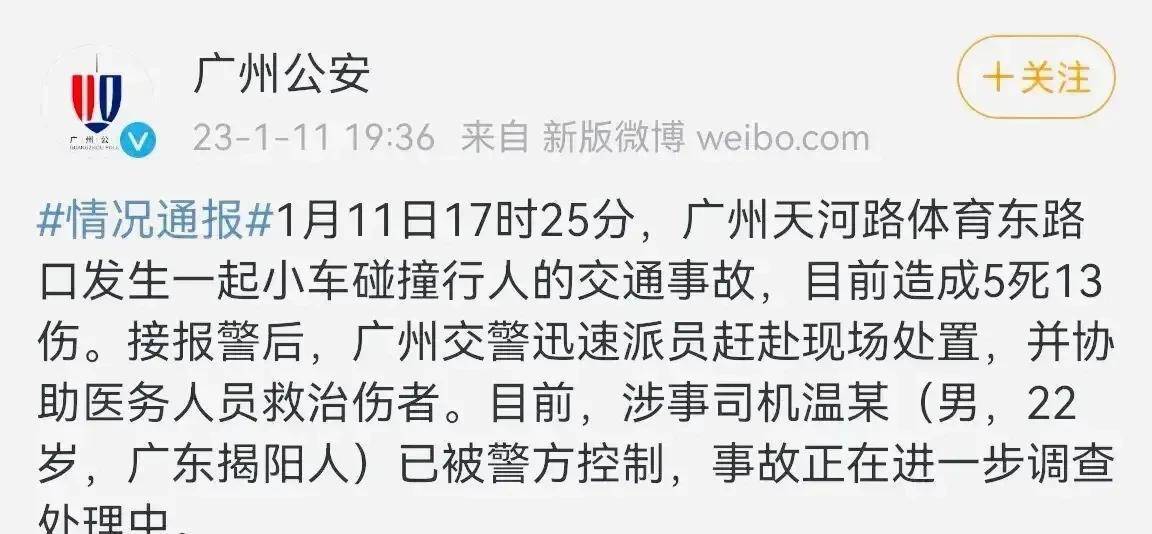 2023年1月11日17时25分,下班高峰时段的广州天河路体育东路口,大批行人正在有序过街,22岁的宝马车主温某驾车全速冲向毫无准备的人群,现场有行人直接被撞飞,有人直接被带到车底!隔了一阵,温某又驾车掉头回来,再次冲向现场围观人群,又造成新的事故;温某继续逆行被逼停后,他还下车撒钱想要跑路,据说车上放了厚厚的一堆百元现金,被抓后的温某还一副无所谓的样子!
