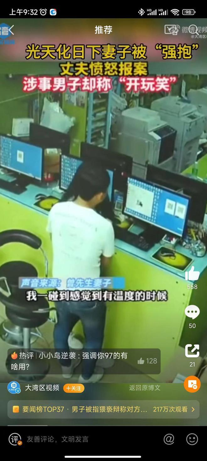 4月23日,广州打印店的老板曾老板说,他和妻子在当地开了一家打印店。前几天看了监控,发现一个人进店后,不仅碰到了妻子的身体,还强行搂抱了妻子。他认为妻子被猥亵了,然后和妻子一起去了附近的警察局报案。曾老板的妻子说她不认识这个男人,对方只是一个普通的顾客。