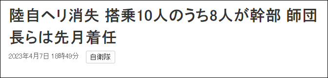 NHK:陆自失事直升机上10人有8人是干部,师团长上月刚到任