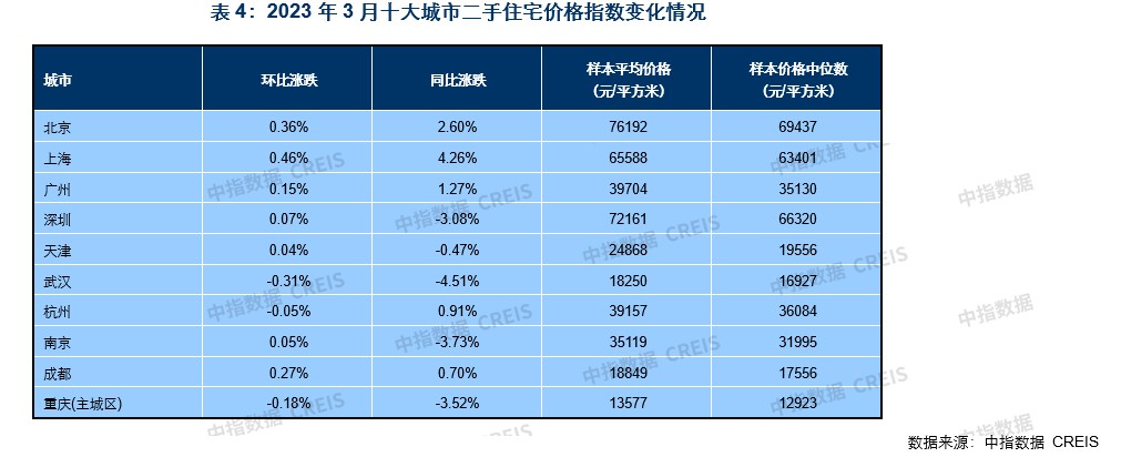 具体而言,新建住所方面,3月,除三四线代表城市新房价格环比继续跌落外,一线及二线城市新建住所价格环比均上涨,且涨幅均有所扩展。