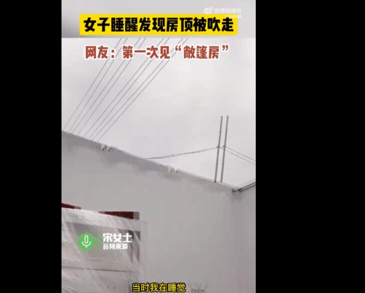 女子睡醒发现房顶被吹走 当时九级大风这睡得也太死了吧