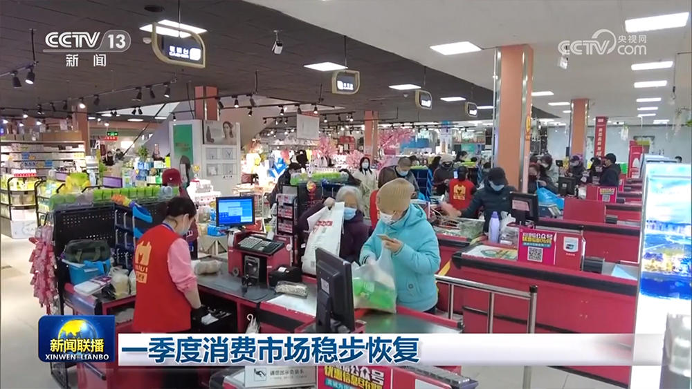 央视网消息(新闻联播):商务部数据显现,跟着提振消费的各项政策办法落地收效,一季度,消费市场出现稳步康复态势。
