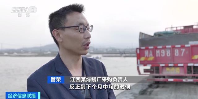 江西某烤鳗厂收买负责人 管荣:订单量同比增加了10%左右。今天在这边收鱼,明日就回到公司去加工了。加工完就给客户发货,不愁卖。