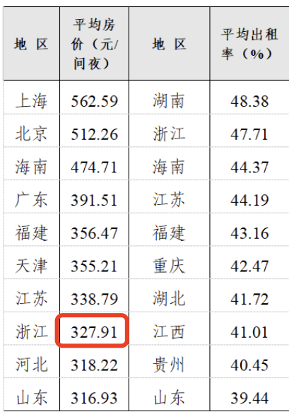 浙江酒店房价在全国排名如何?《陈述》数据显现上一年全国星级饭馆均匀房价前十位区域,浙江排名第七,客房均价327.91元/间;均匀出租率前十位区域,浙江排名第二。