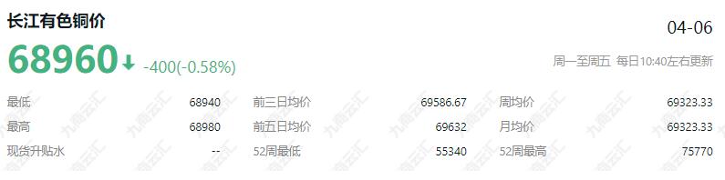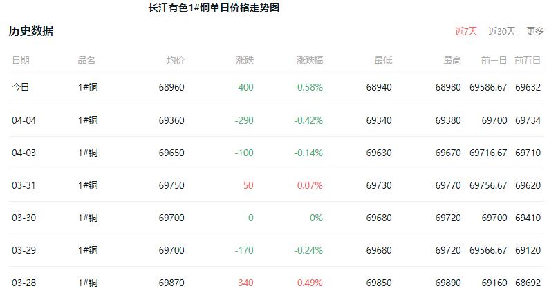 4月6日长江有色今日铜价铜锭价格行情 长江有色近7日铜价 作者:admin 来源:网络 发布:2023-04-06 11:24:32 网址:http://m.guazhitianqi.com/redian/3939.html 评论:0 收藏 2023年4月6日长江有色1#铜价68960下跌400,最低68940最高68980,前三日均价69586.67,前五日均价69632。 上一篇:日剧tv,它有什么看点 下一篇:中国乒乓邓超原型是谁?中国乒乓邓超演的乒乓球教练是谁 相关热词搜索:4月6日长江有色今日铜价铜锭价格行情 北京天气预报 上海天气预报15天 天气预报降水分布