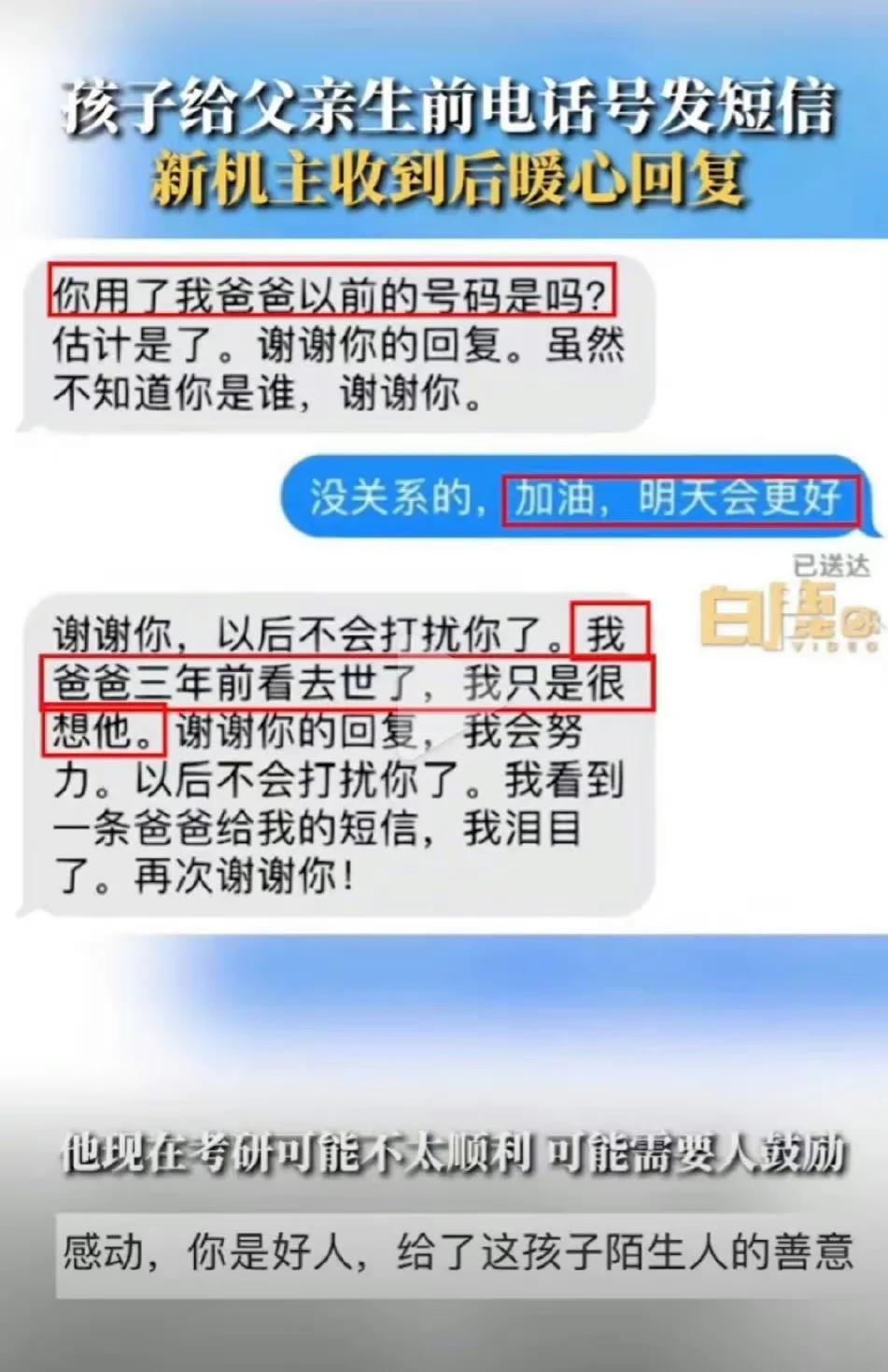 孩子给离世父亲发短信新机主回复 真相令无数人泪目