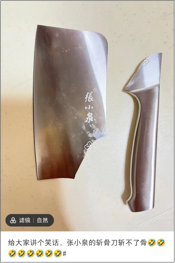继“拍不了蒜”的菜刀后,张小泉的刀再一次被推上风口浪尖。这次引发群众关注的,是“斩不了骨”的斩骨刀。
