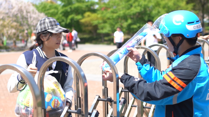“现在是杭州最好的时节,到亚运公园露营的多了,咱们的单子也多了。”黄金成是甘肃人,来杭州参加饿了么西湖一站站点3年了,一直在紫金港一带送外卖。跟着杭州亚运公园成了闻名的露营公园,黄金成简直成了这个公园的专送小哥。除了工作人员,或许没人比他更熟这个公园。“可以说,每一块草坪我都去过。”