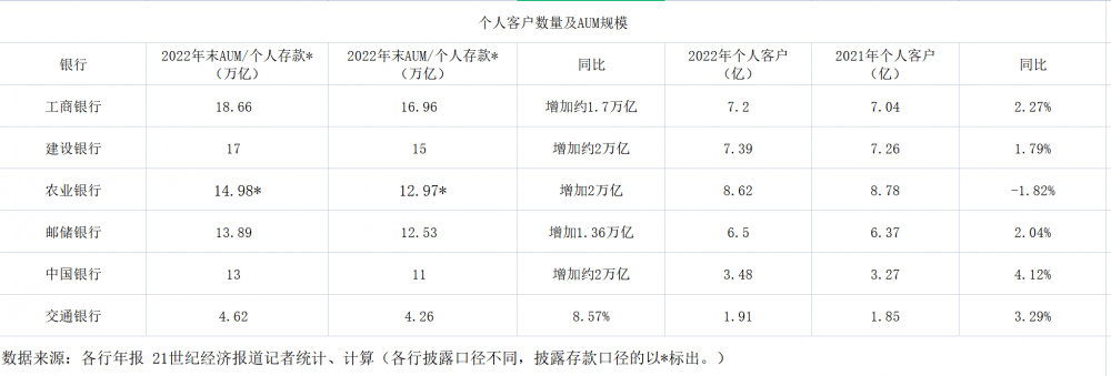 复盘六大行财富办理:仅两家中收增加,个人客户数量增速