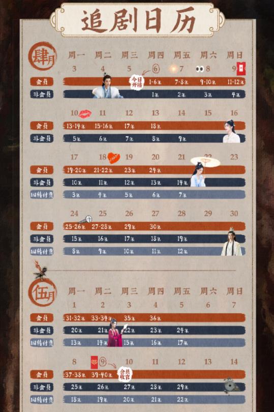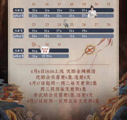 1、长月烬明更新时间追剧日历:4月6日18:00上线优酷全网独播,优酷会员首更6集,连更8天,4月17日起周一周二每天更新2集,周三周四每天更新1集;非优酷会员首更1集,连更9天,4月17日起周一至周五每天更新1集。一共40集。