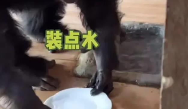 4月5日,重庆的某动物园内,有网友拍摄到黑猩猩在吃完饭以后,还会到水池旁边去刷盘子。画面显示,黑猩猩蹲坐在水池旁,先用盘子去装点水放在地上,然后用双手去搓洗盘子,看起来有模有样。网友:原来是只自律猩。