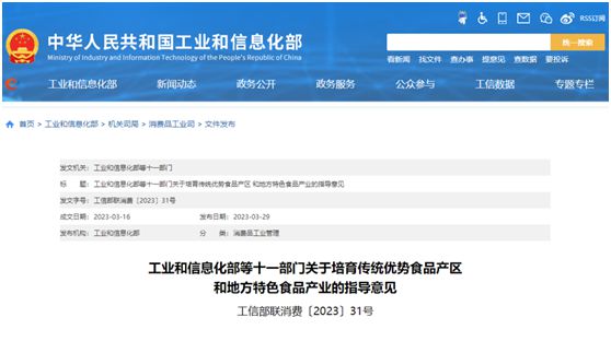 3月29日,工信部等11个部分联合印发《关于培养传统优势食物产区和当地特征食物工业的辅导定见》(以下简称《定见》)。