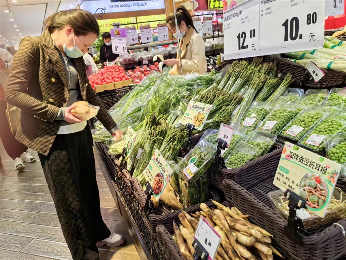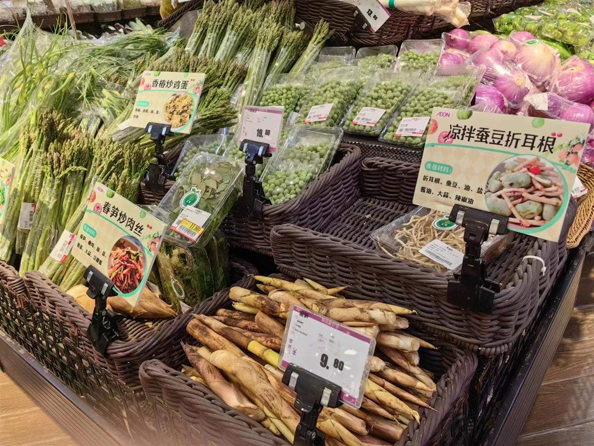 生鲜蔬菜的“烹饪教程图”除了让一些顾客感觉到比较便利之外,也对蔬菜的销量增加供给了帮助。一位导购员介绍,在纸板放到相对应的蔬菜中心之后,逗留观看的顾客显着变多,最终乐意收购的人也显着增加了。“尤其是像春笋、折耳根、蚕豆这些时令蔬菜,销量提高得最多。”