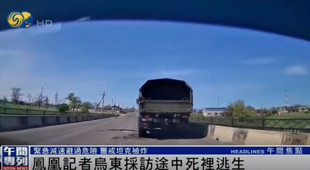 凤凰卫视采访车遭乌炮火击毁