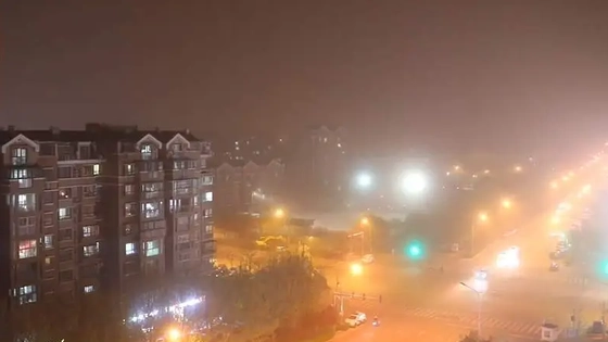 4月10日20时,北京市气象台升级发布沙尘暴黄色预警信号。画面显示,北京城区被黄沙笼罩,璀璨夜景秒变赛博朋克风,行人戴上口罩也遮不住吃土感。