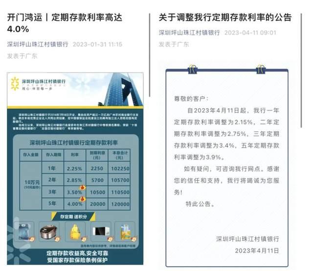 4月11日,深圳坪山珠江村镇银行公告称,即日起调整该行一年、二年、三年、五年定时存款利率,调整后别离为2.15%、2.75%、3.4%、3.9%,均较“开门红”期间下调10个基点。
