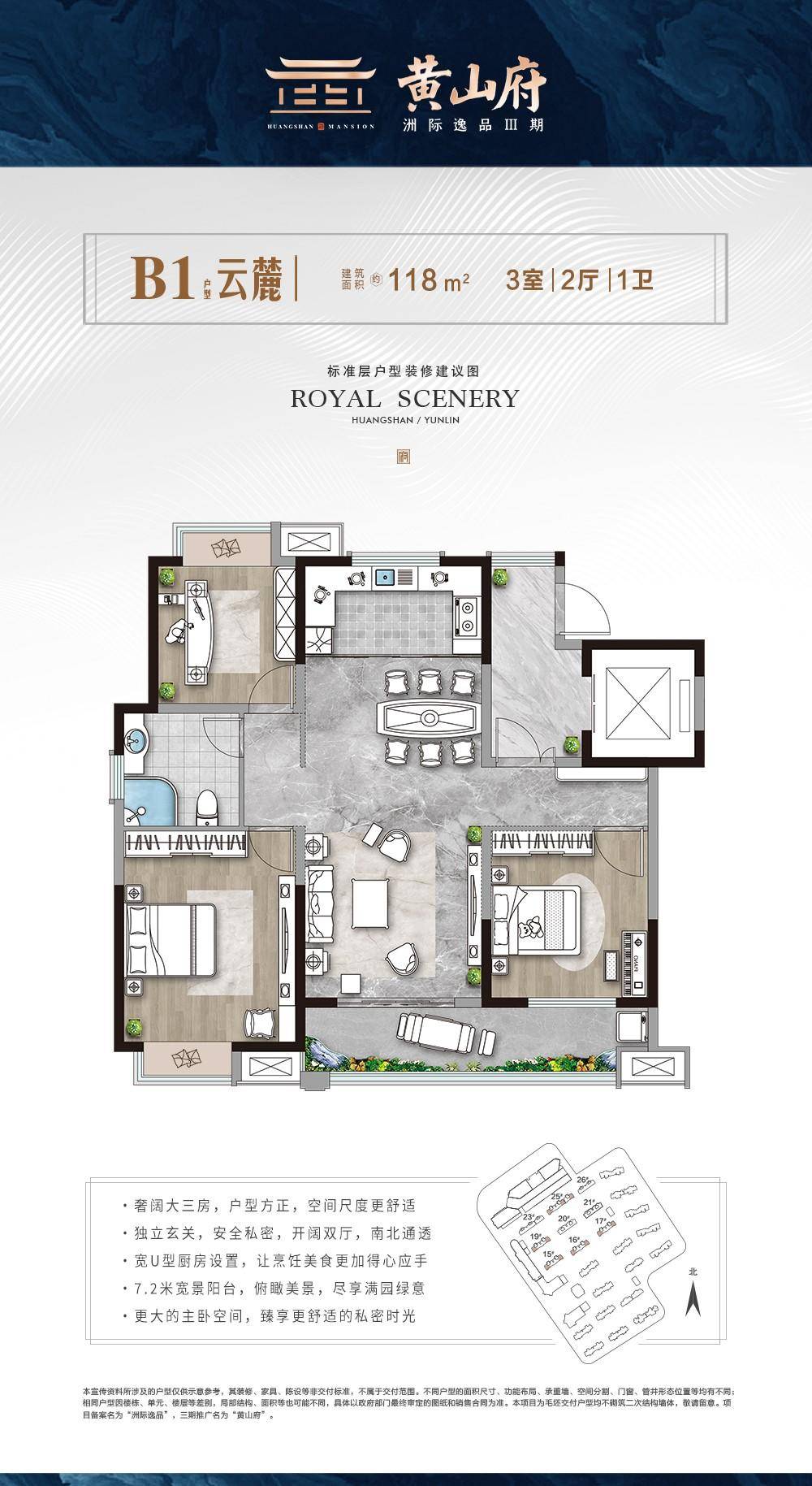 而此次面市的三期黄山府,规划的9栋楼均为13F小高层,户型面积为103㎡的舒适小三房、118㎡阳光大三房和132㎡奢阔四房,梯户比1:1,南北通透,具有更好的采光通风作用、更好的景象视界、更好的寓居舒适度。