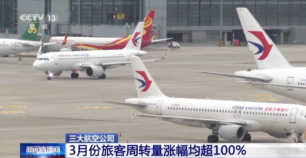 日前,多家上市航空公司及机场发布3月份运营数据。数据显现,三大航司3月份旅客周转量涨幅均超100%。