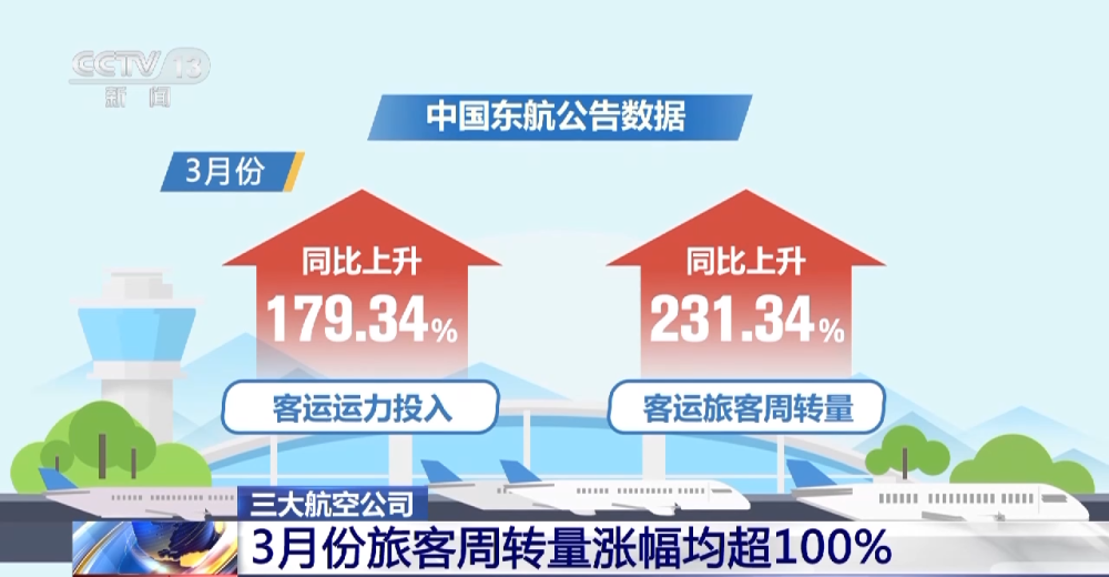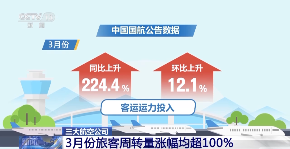 国航等三大航空公司:3月份旅客周转量涨幅均超100% ,具
